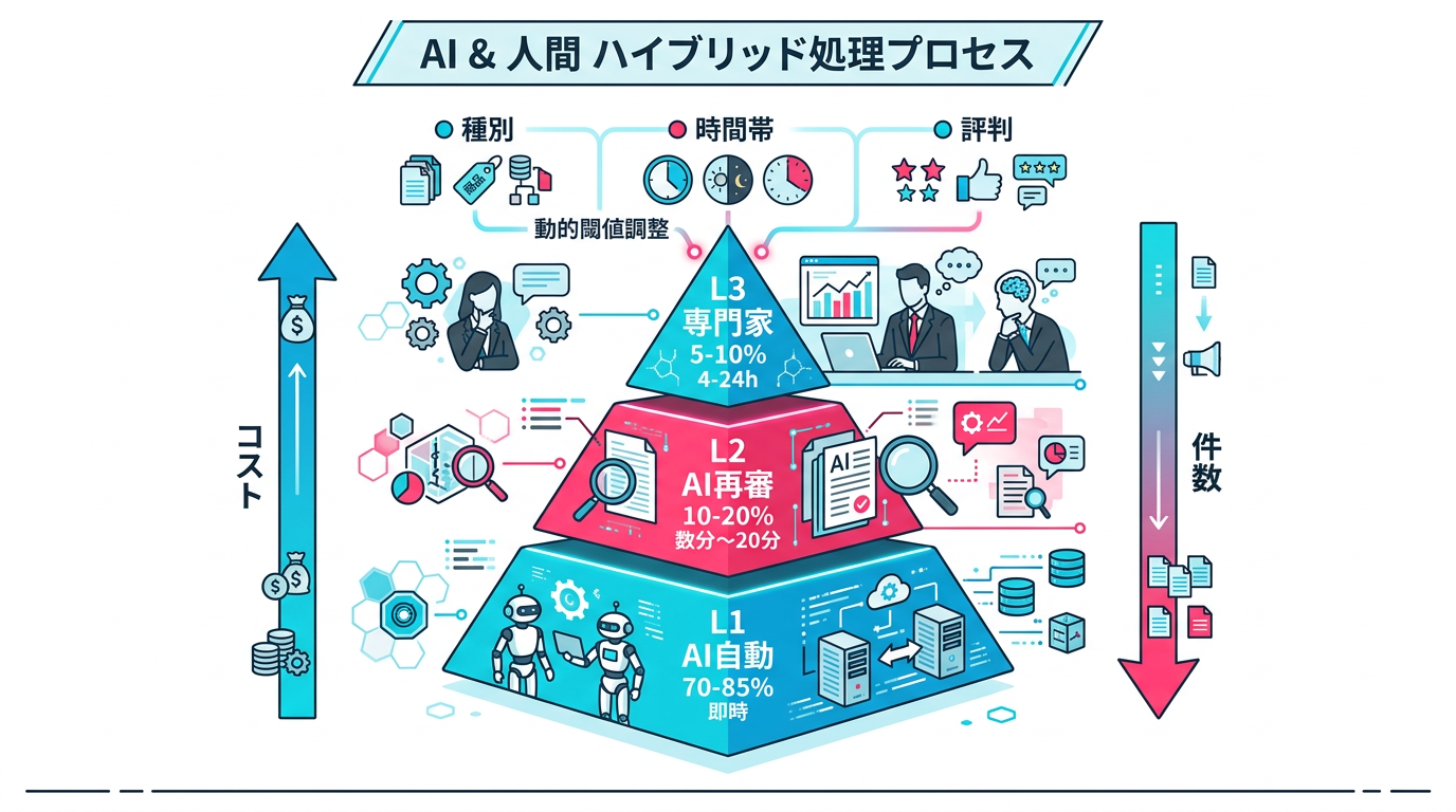 | L3 | 人間専門家 | 信頼度70%未満 | 4〜24時間 | 5〜10% |
